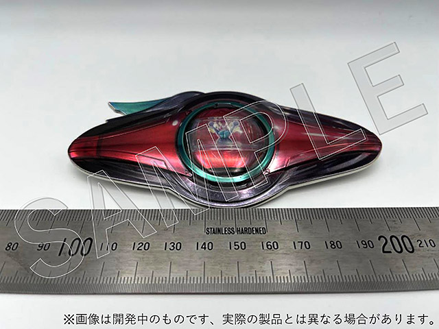 当初、ゼッツゲイムライン(全身を走る赤いライン)に合わせてメタリックレッドの箔を押してのご提供を想定しておりました。